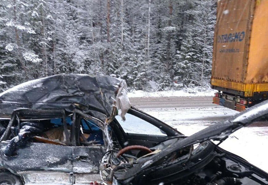 Видеорегистратор автомобиля, водитель которого стал очевидцем произошедшего, запечатлел инцидент. На кадрах видно, как черный автомобиль боком влетел в большегруз. В конце записи заметно, что Toyota получила серьезные повреждения: у транспорта полностью смят кузов, разбит капот, бампер и стекла.