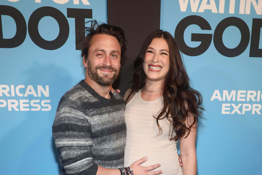 Киран Калкин и его супруга Джазз Чартон появились на премьере мюзикла «В ожидании Годо», которая состоялась 28 сентября в Нью-Йорке. На мероприятии знаменитости объявили о предстоящем пополнении в семье. Жена актера надела бежевое облегающее платье, подчеркнувшее ее округлившийся живот. Артист предпочел серый полосатый свитер и черные брюки.