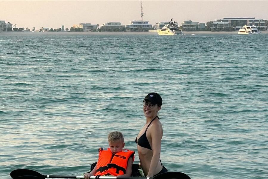 «Море на детские каникулы — это лучший подарок, я считаю. А в тихой Bvlgari-бухте впервые опробовали каякинг вместо джетски. Мама очень довольна, потому как каякинг не дребезжит, не боишься, что он куда-то врежется, ну и вообще руки красивые накачать веслом на отдыхе — дело хорошее», — написала звезда под фото.