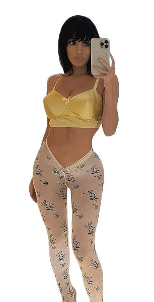 На одном из кадров Бьянка Цензори предстала в желтом бюстгальтере с конусами, который дополнила полупрозрачными белыми лосинами с цветочным принтом и блестящими атласными туфлями на каблуках. Модель была запечатлена с распущенными волосами и макияжем с темными тенями. На других снимках жена Канье Уэста позировала в похожих образах в ретро стиле.