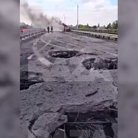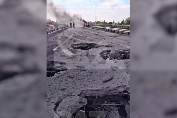 Спустя некоторое время украинские войска нанесли еще один удар по мосту, из-за чего обрушился один из пролетов.