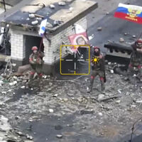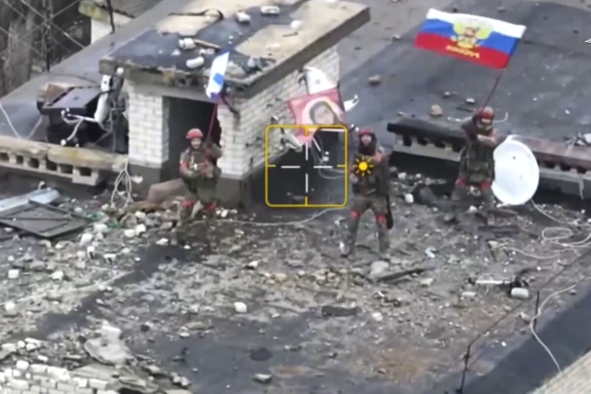 Российское Минобороны опубликовало в Telegram-канале видео, на котором военные устанавливают флаг РФ на крышах поврежденных зданий в поселке Великая Новоселка в Донецкой народной республике.