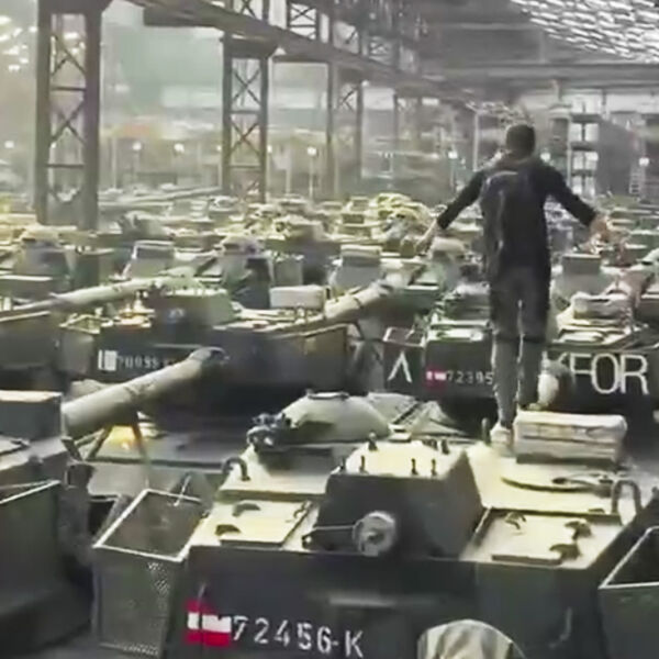 На кадры попало большое помещение с военной бронетехникой. В частности, на складе стояли нидерландские бронетранспортеры YPR-765, немецкие зенитные самоходные установки Gepard и австрийские 105-мм легкие танки SK-105 Kürassier.