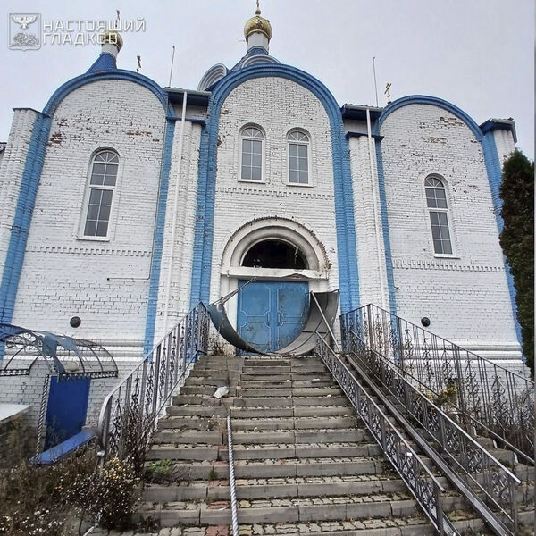 На опубликованных чиновником фото видно, что снаружи упал металлический навес над входом в здание, внутри храма тоже есть разрушения.