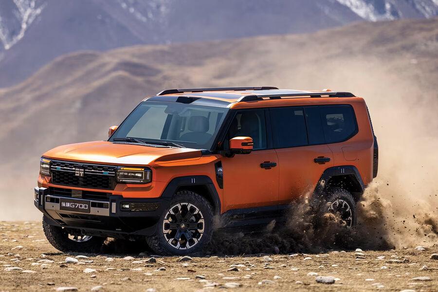 Jetour G700 — рамный внедорожник с гибридной силовой установкой. Он оснащен турбомотором 2.0 и двумя электродвигателями. Суммарная мощность силовой установки для автомобилей, предназначенных для экспорта за пределы Китая, составляет 901 л.с. Запас хода с полностью заряженной тяговой батареей и полным баком топлива достигает 1,4 тыс. км.