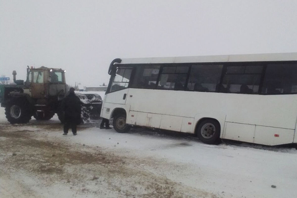 Авария произошла на скользкой дороге в условиях ильной гололедицы, на момент аварии дорога не была посыпана песком с солью. На фото с последствиями инцидента видно, что на проезжей части есть песок. Для того чтобы достать автобус из кювета, был привлечен тяжелый трактор. О пострадавших в результате аварии не сообщается.