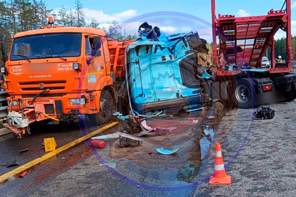 «Две фуры превратились в металлолом на 516-м км трассы М11 «Нева»: на полной скорости водитель Shacman наехал на грузовик ремонтников», — говорится в публикации.