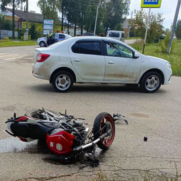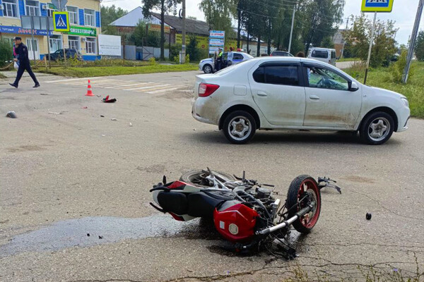 Авария произошла днем в воскресенье на улице Гагарина. Мотоцикл врезался в автомобиль Renault Logan.