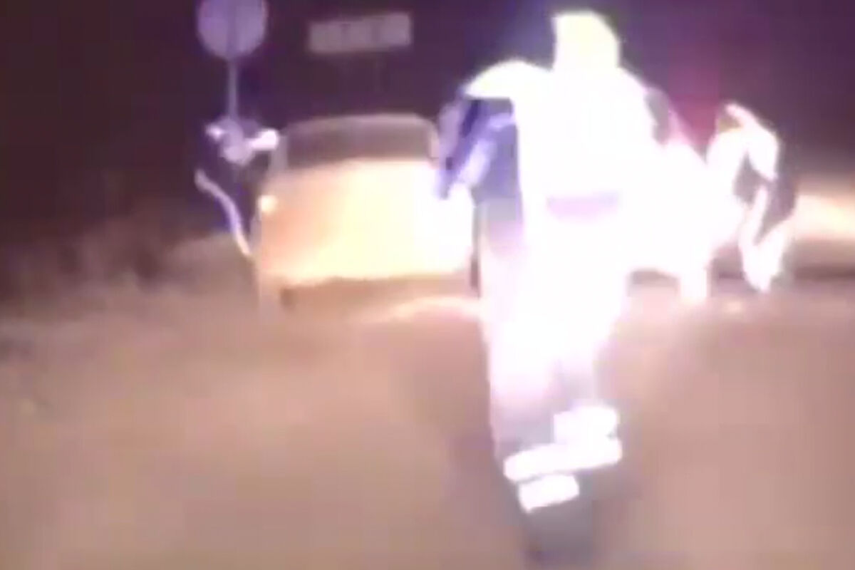 На опубликованном видео видно, что полицейские преградили путь нарушителю тремя служебными машинами. Когда автоинспекторы выскочили из автомобиля, чтобы задержать мужчину, он стал объезжать их машину и придавил одного из инспекторов к столбу с дорожным знаком, после чего попытался скрыться.