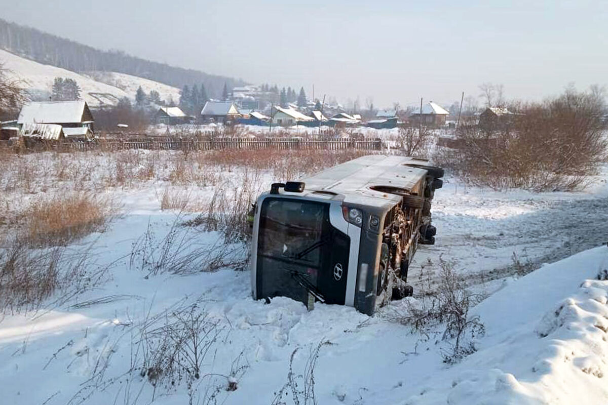 «54-летний водитель автобуса «Хендай», следовавшего из г. Кызыл в г. Красноярск, не справился с управлением и допустил съезд с дороги в правый кювет с последующим опрокидыванием», — говорится в сообщении.