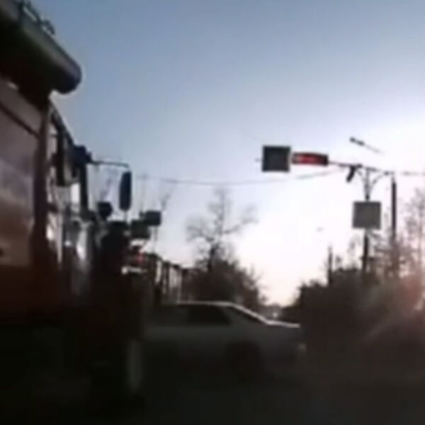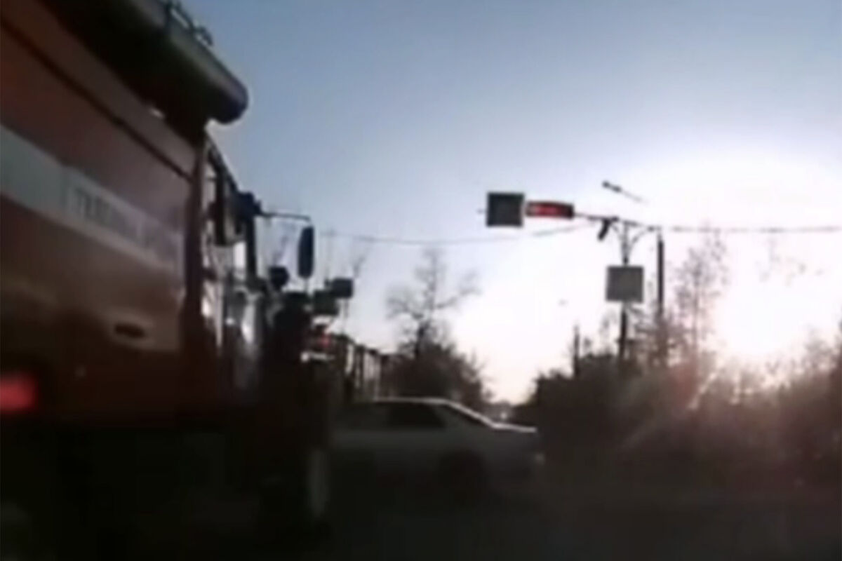 На видео попал момент ДТП в Хакасии, где девушка вылетела под пожарную машину