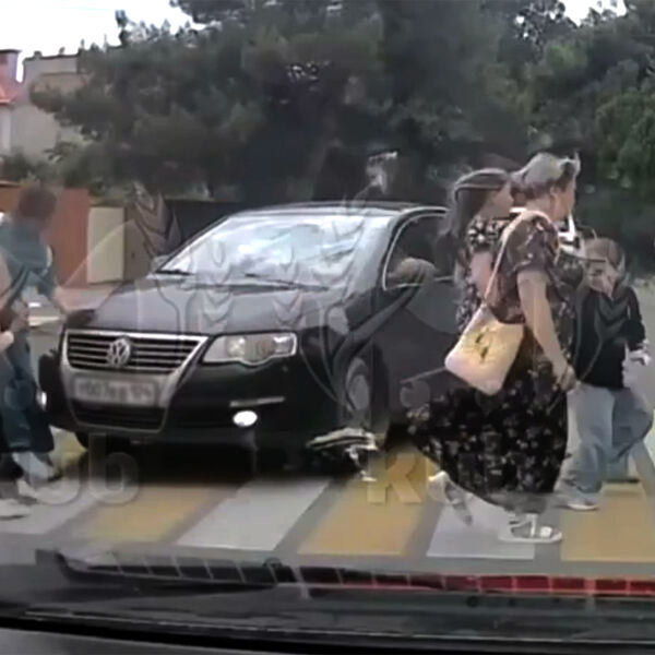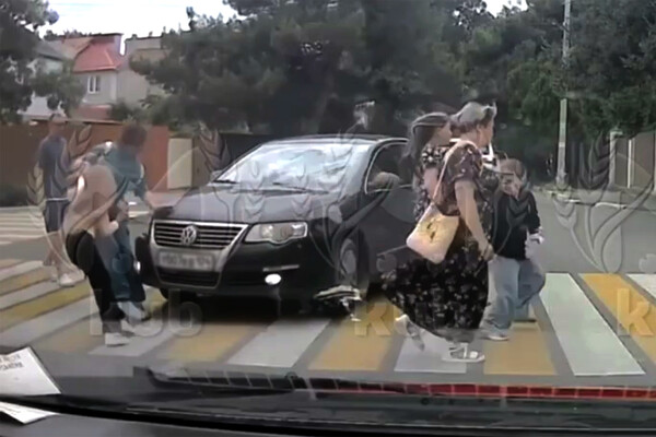 Видеорегистратор автомобиля, водитель которого стал очевидцем произошедшего, запечатлел инцидент. На кадрах видно, как иномарка останавливается перед пешеходным переходом, а потом начинает двигаться на толпу людей, которые разбегаются в стороны.