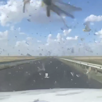 В Дагестане водитель снял на видео облако саранчи над дорогой. Об этом сообщает Life со ссылкой на SHOT.