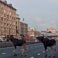 «Ничего необычного, просто лоси на шоссе Энтузиастов. К счастью, они самостоятельно вернулись в лес», — говорится в сообщении.