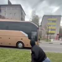 Судя по кадрам, группа несовершеннолетних закидала автобус камнями. После этого подростки скрылись.