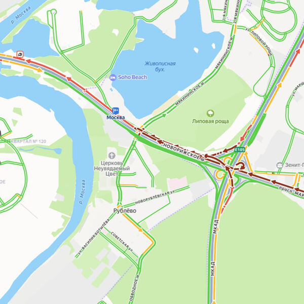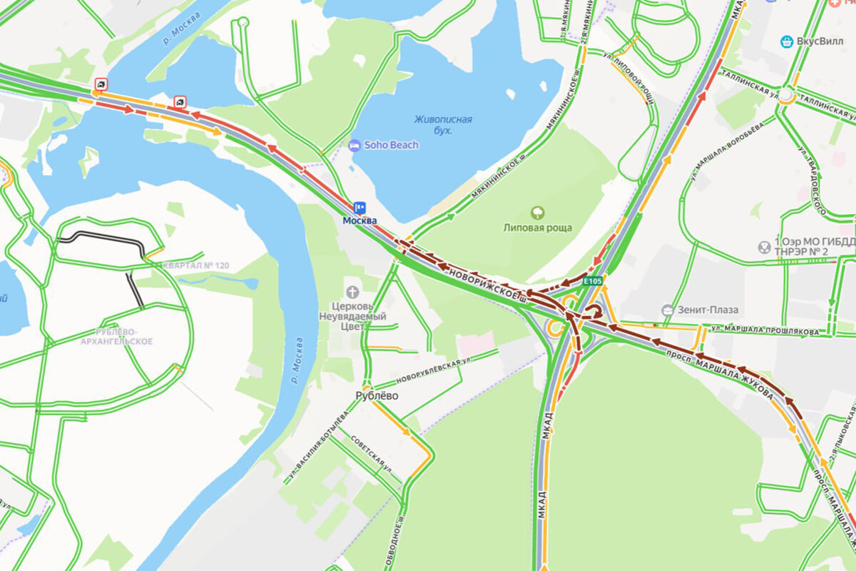 Судя по онлайн-картам, в результате аварии движение автотранспорта оказалось серьезно затруднено. Причины ДТП уточняются.