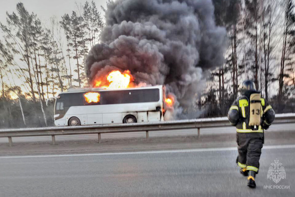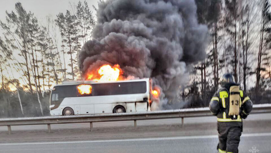 Пассажирский автобус охватило огнем по дороге в Екатеринбург