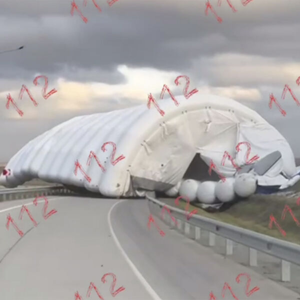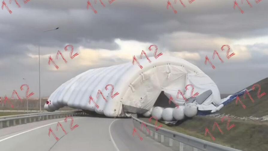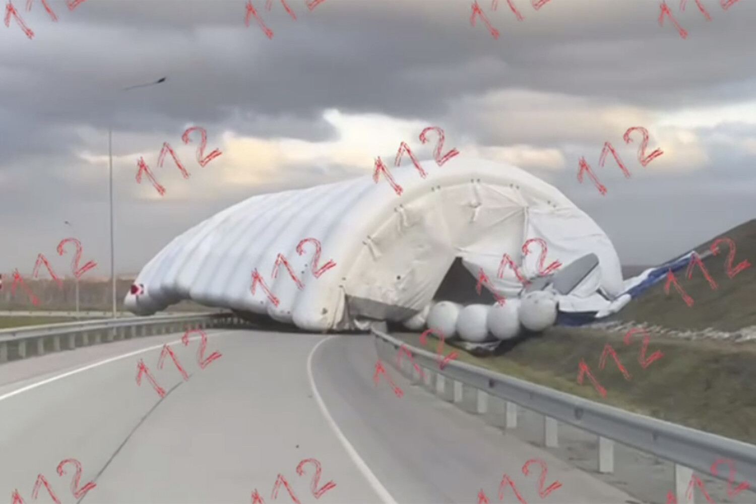 «Огромный надувной шатер сдуло прямо на дорогу в Новосибирске. Инцидент произошел несколько дней назад, когда в регионе бушевал сильный ветер», — говорится в публикации.