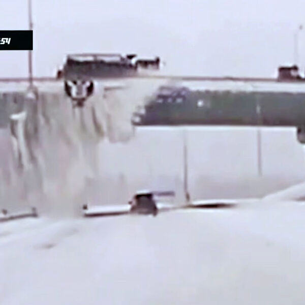 На размещенных кадрах видно, как на легковой автомобиль сбрасывается целая лавина. Судя по видео, после этого водитель принял решение съехать на обочину.