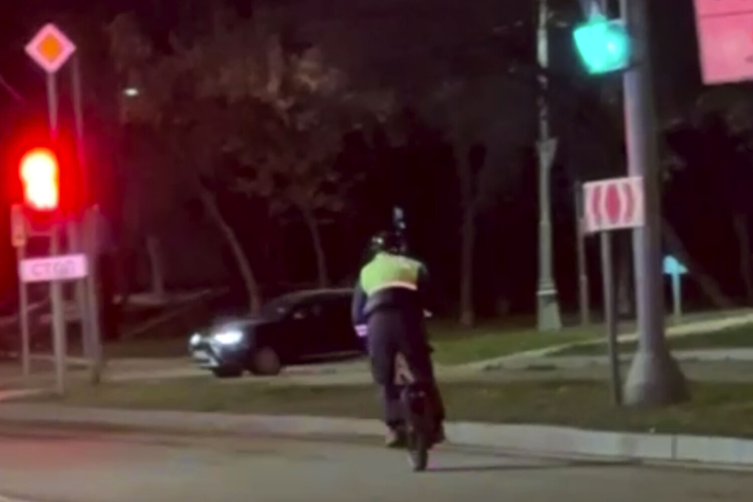 На видео сняли гаишника, который ездил по Москве на моноколесе