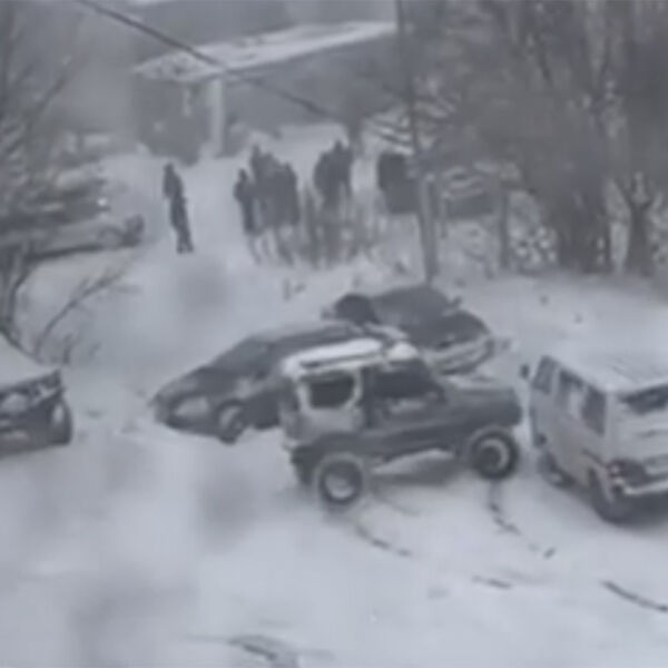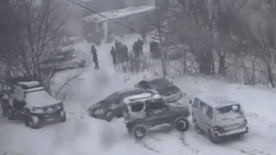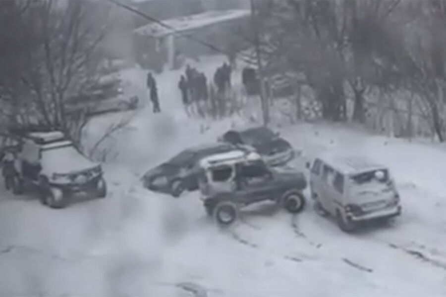 На Камчатке на видео попало, как неуправляемые авто катились и врезались друг в друга