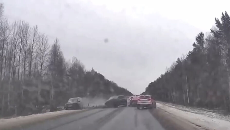 Видеорегистратор автомобиля, водитель которого стал очевидцем произошедшего, запечатлел инцидент. На кадрах видно, как черный автомобиль выезжает на встречную полосу движения и врезается в другую машину, при этом от удара отлетает в соседний транспорт. На записи также заметно, как в момент столкновения машина падает в кювет, а автомобильные детали разлетаются по проезжей части.