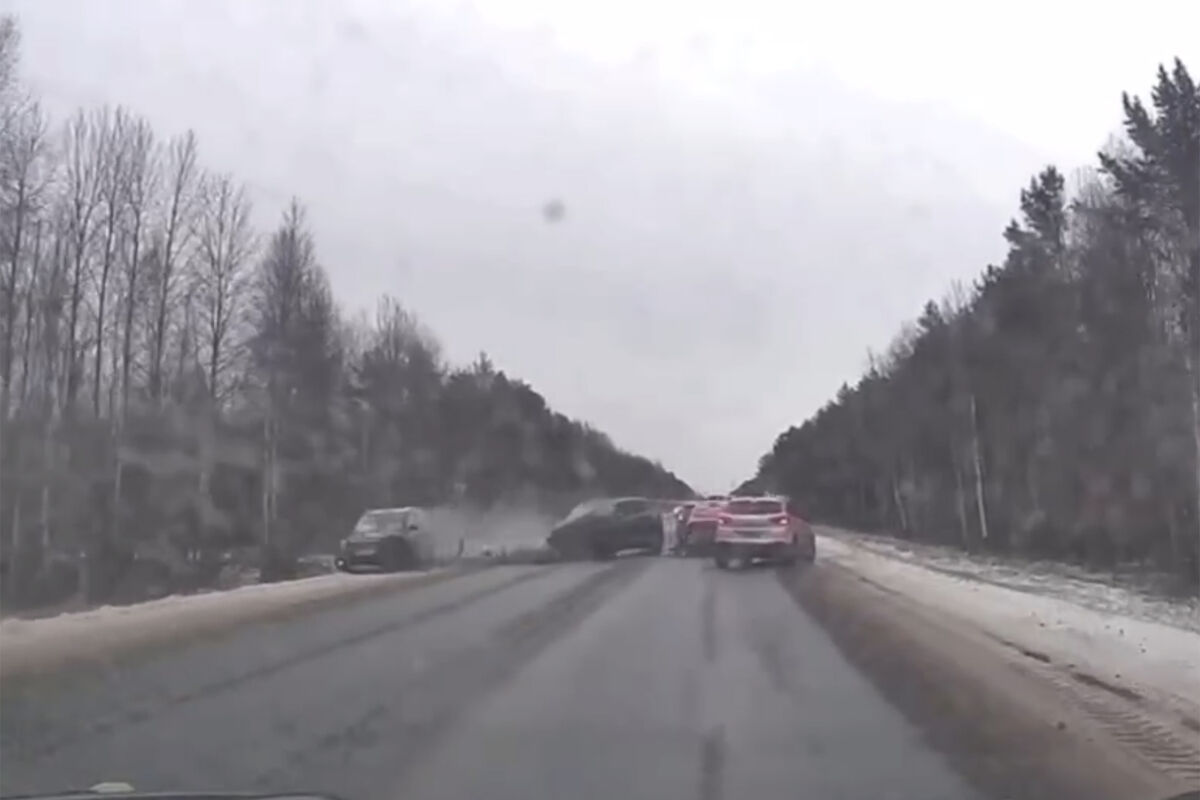 В Архангельской области на видео сняли, как машины с людьми разлетелись в серьезном ДТП