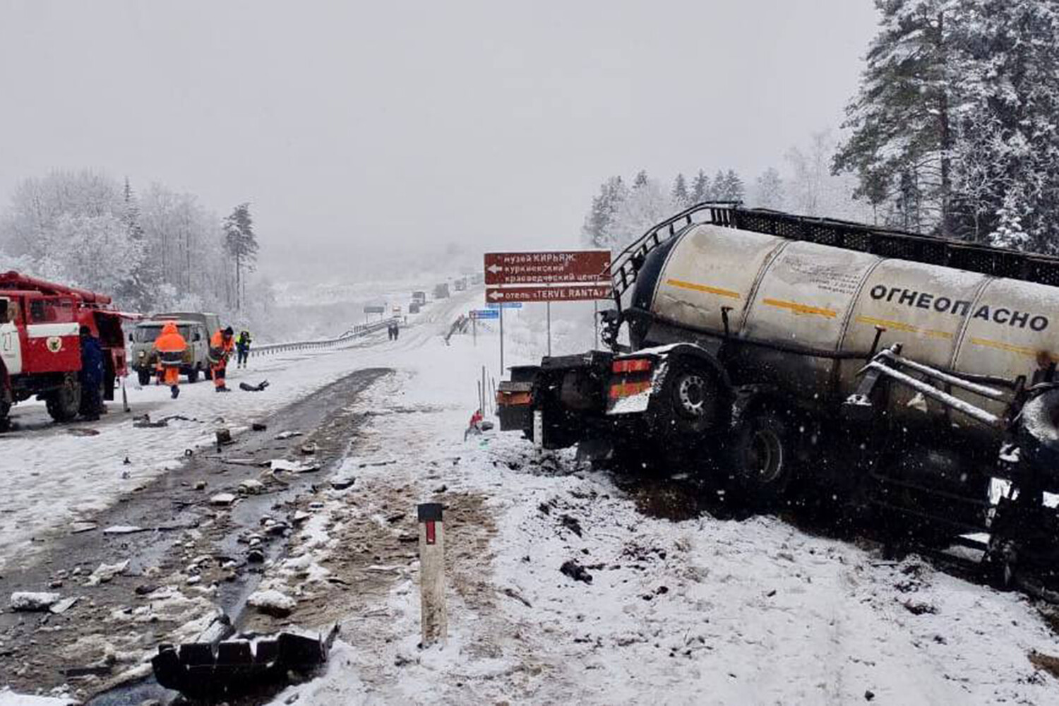 В Карелии произошло массовое ДТП с бензовозом, три человека получили травмы, еще троих спасти не удалось. Об этом рассказал в своем Telegram-канале председатель госкомитета Карелии по безопасности Олег Поляков.