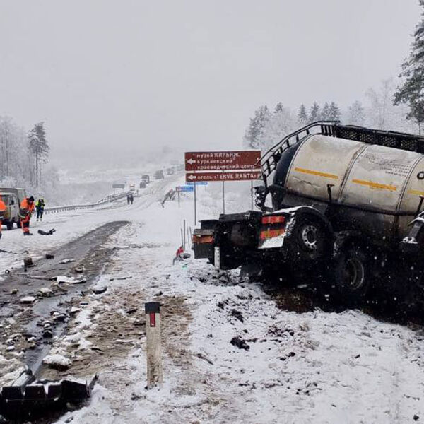 Уточняется, что на данный момент движение по дороге временно ограничено, транспорт едет через поселок Куркиеки. На месте аварии работают сотрудники МВД, заключил Поляков.