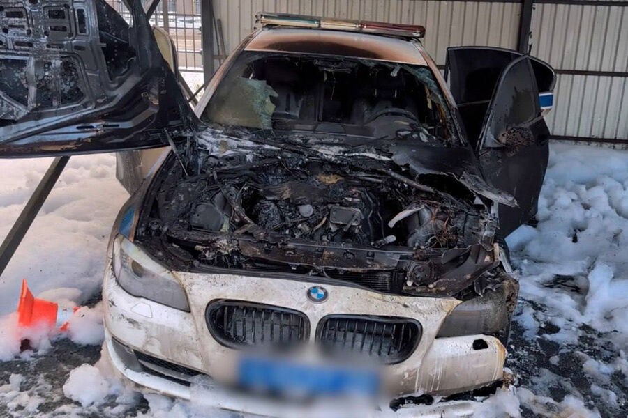 Появилось фото сожженного подростком-мигрантом автомобиля ГИБДД в Петербурге