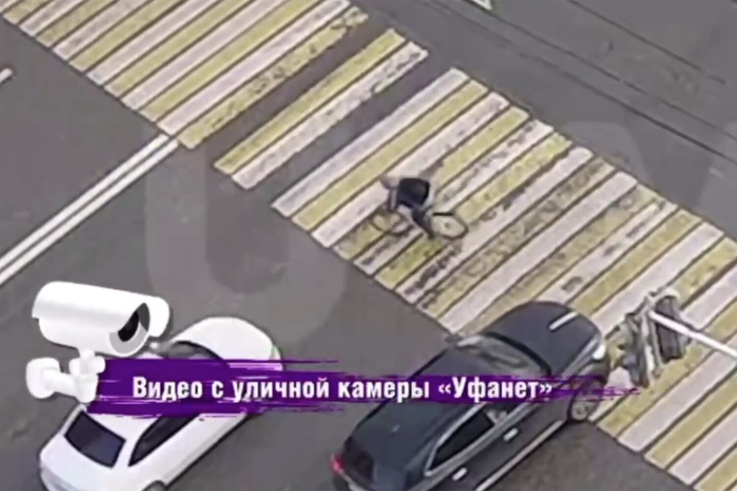 Уличная камера запечатлела инцидент. На кадрах видно, как в момент ДТП велосипедист подлетает в воздух, ударяется об крышу серой машины, переворачивается и падает на проезжую часть. В этот момент к пострадавшему подбегают прохожие и водитель. По словам очевидцев, уфимец сломал руку.