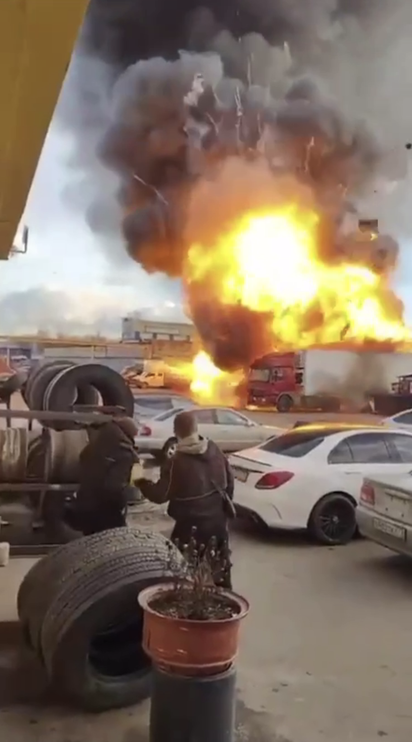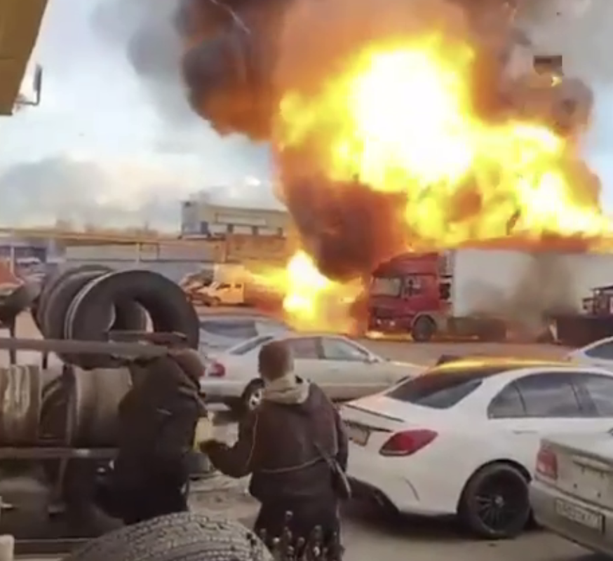 В подмосковном городе Видное взорвалась фура. Видео опубликовал Telegram-канал «Что там, Москва?»