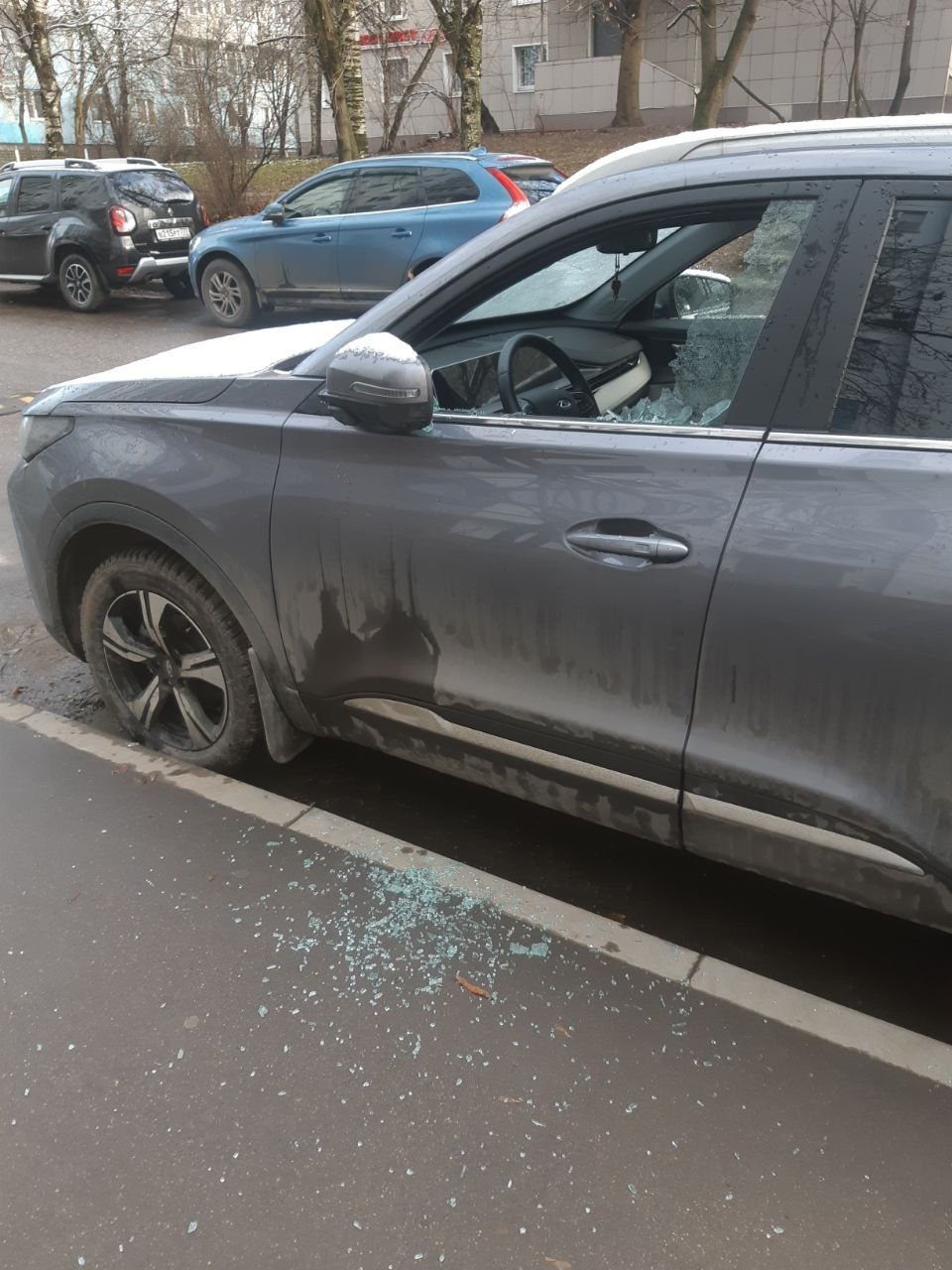 Челябинская улица расположена на востоке Москвы в районе Южное Измайлово. На кадрах с места происшествия видно, что от действий злоумышленников пострадал, в частности, кроссовер Chery темно-серого цвета. У него полностью выбито боковое стекло на водительской двери, а лобовое стекло покрылось трещинами. Тротуар рядом с припаркованными машинами засыпан осколками.