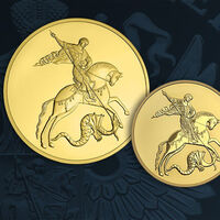 В октябре Банк России выпустил золотую монету номиналом 100 рублей с изображением Георгия Победоносца. Ее тираж составил до 100 тысяч штук, диаметр — 30 мм. Масса драгоценного металла в чистоте составляет 15,55 грамм, проба — 999.