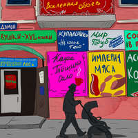 Владельцы бизнеса ударяются в одну из четырех крайностей, гарантирующих хохот окружающих. Первая – это имперские амбиции: «Королевство штор», например, или «Империя ванн». Местечковое, провинциальное желание казаться значимым и успешным бизнесменом вижу я в этом пафосе. Вторая крайность – страсть увековечивать дочек-сыночков или себя самого: лапша быстрого приготовления «Иван и Дуся», магазин женского белья «Красавчик Руслан», йогурт «ВасиЛисса». Третья, как можно догадаться, – страсть к космополитизму, совмещенная с плохим знанием английского: автосалон Favorit (вместо Favourite) или «Немецкая OBUV». И уже хребтом чуешь, что obuv произведена не в Гамбурге, а в Шанхае в лучшем случае. И, наконец, четвертая крайность – русофильство. Ресторан «Мокошь-матушка», рекламное агентство «Сама Ра», логопедическая школа «Азъ Глаголъ». Посетители опасаются, и справедливо опасаются, что встретят их рунами, пропагандой Белобога и протертой свеклой.