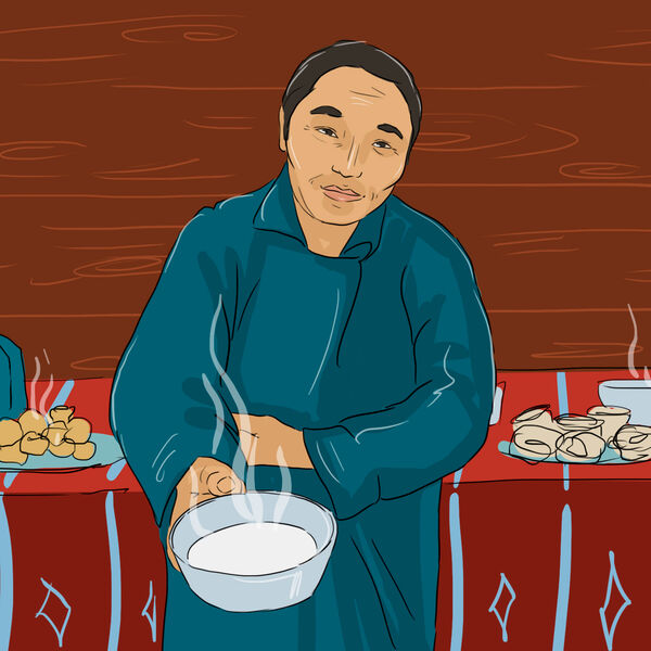 В «Алдын-Булаке» готовят всю тывинскую классику. Во-первых, главный хит, хуужуры – крошечные чебуреки из плотного теста. Начинки бывают двух видов: рубленая говядина с рубленым бараньим курдюком либо мелко перемолотые бараньи потроха. Второй вид, на мой взгляд, даже интереснее, но найти его сложнее. Во-вторых, бууза – так здесь называют буузы, они же позы, они же манты: большие, приготовленные на пару пельмени с отверстием наверху, с начинкой из рубленой баранины. Затем кара мун, то есть «черный бульон» – суп из бараньего мяса и потрохов, с крупой или лапшой. И непременно сюттюг шай, главный напиток всех кочевников Центральной Азии – зеленый плиточный чай, сваренный с молоком и солью. Можно, впрочем, попить чаю, заодно и поев – в чайном бульоне тут частенько подают пельмени.