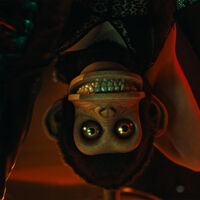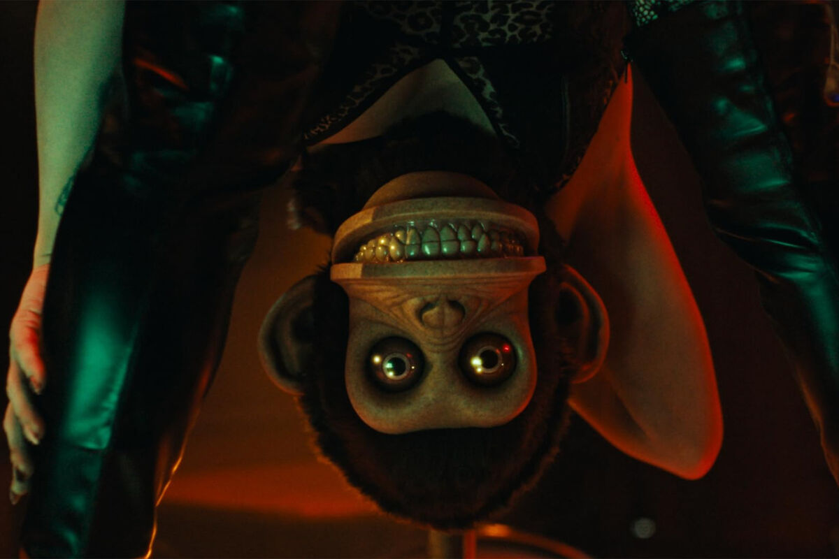 Несколько лет назад у студии Джеймса Вана Atomic Monster был на руках готовый сценарий киноадаптации рассказа Стивена Кинга «Обезьяна», выдержанный в относительно серьезной интонации оригинального текста. Та версия, вероятно, могла бы обогатить и без того не бедную вановскую франшизу «Заклятие» (в зловещей коллекции экранных Эда и Лоррейн Уорренов, раз уж на то пошло, имеется похожая игрушечная мартышка с аккордеоном). Однако вставший у руля проекта режиссер Оз Перкинс решил переписать текст в соответствии с собственным мироощущением.