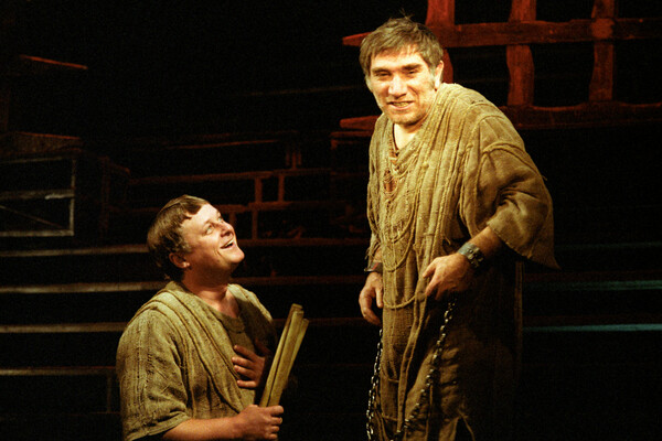 Актеры Борис Галкин и Армен Джигарханян (справа) в роли Сократа в спектакле «Беседы с Сократом» по пьесе Эдварда Радзинского на сцене Московского академического театра имени В. Маяковского, 1981 год
