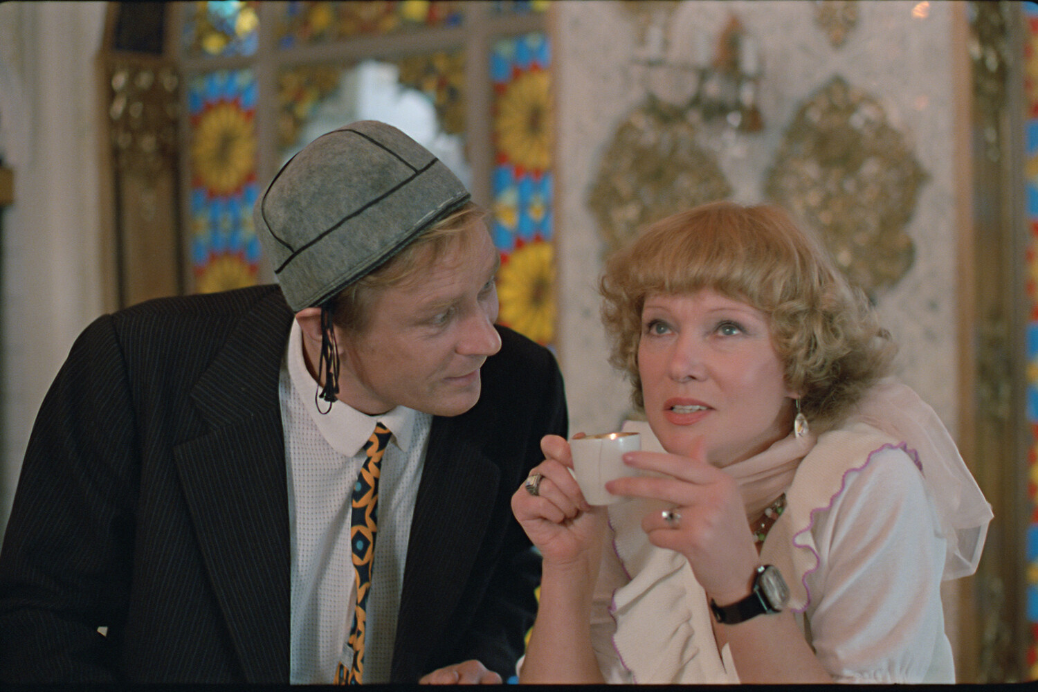 Актеры Олег Янковский в роли Сергея Макарова и Людмила Гурченко в роли Ларисы в фильме Романа Балаяна «Полеты во сне и наяву», 1985 год
