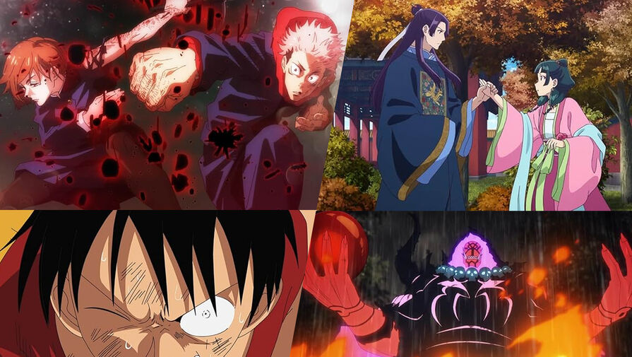 «Монолог фармацевта» «Ван Пис» «Ванпанчмен» «Поднятие уровня в одиночку» «Истребитель демонов» «Магическая битва» «Дандадан» «Кайдзю №8» «Моя геройская академия» «Гачиакута» «Синяя тюрьма: Блю Лок» «Доктор Стоун» «О моем перерождении в слизь»