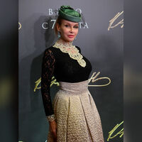 «Мне хотелось составить образ из верха, приближенного к той эпохе. Эту шляпку я покупала в Европе, и она, действительно, 19-го века. А эта блузка Людмилы Марковны Гурченко, которая, как мне кажется, очень к месту здесь. А завтра она снова уедет в музей», — рассказала телеведущая.