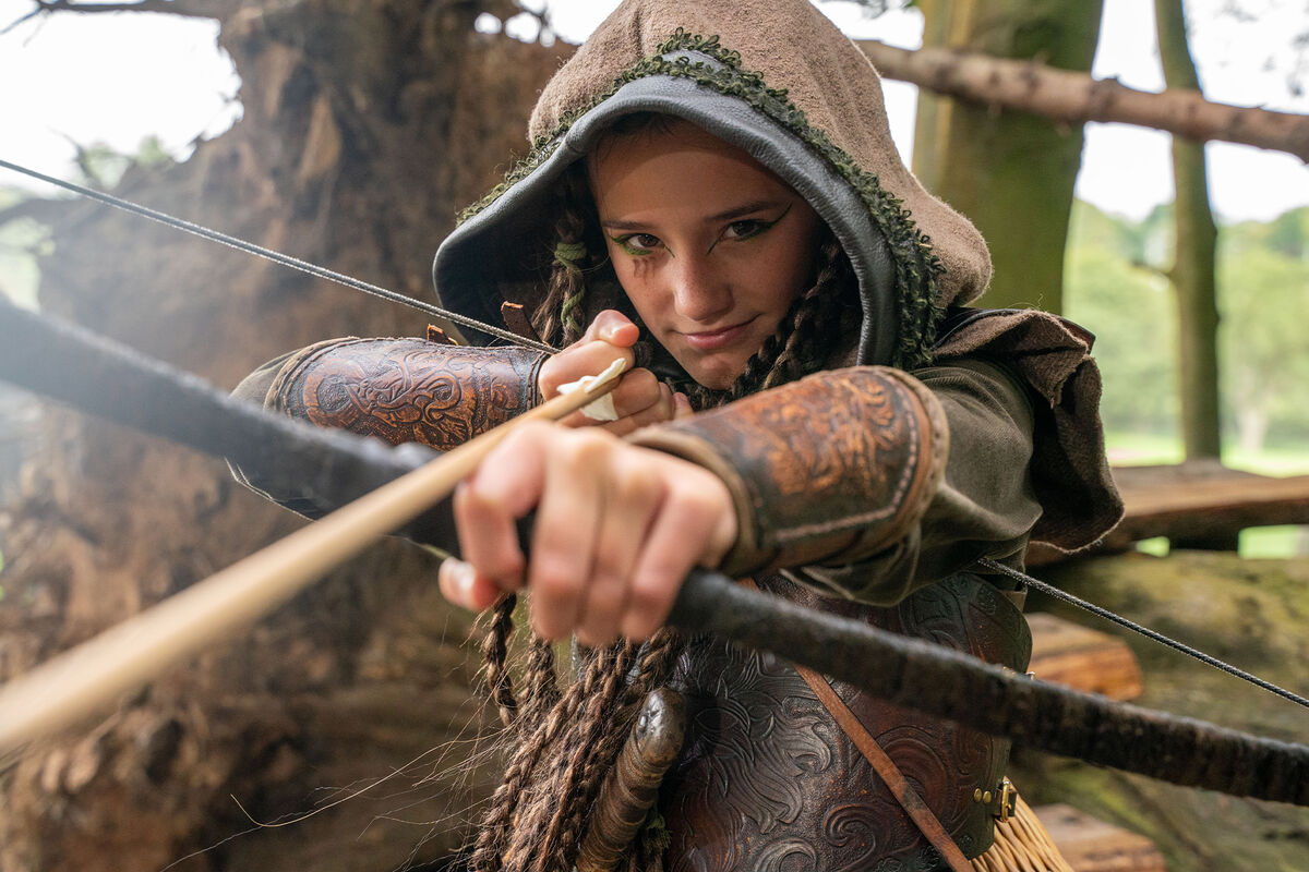 По сюжету британского семейного фильма 11-летняя Робин (Дарси Эварт) и ее друзья «Капюшоны» играют в волшебное королевство в своем тайном уголке. Палки и крышки от мусорных баков они превратили в своем воображении в мечи и щиты, дроны — в величественных орлов, а женщину-хиппи в лесу (Гвендолин Кристи) — в страшную ведьму.