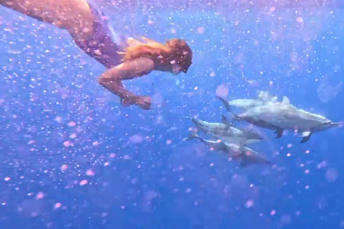 Артистка отправилась в праздничное путешествие в теплые страны и ныряла ко дну моря с дельфинами и кашалотом.