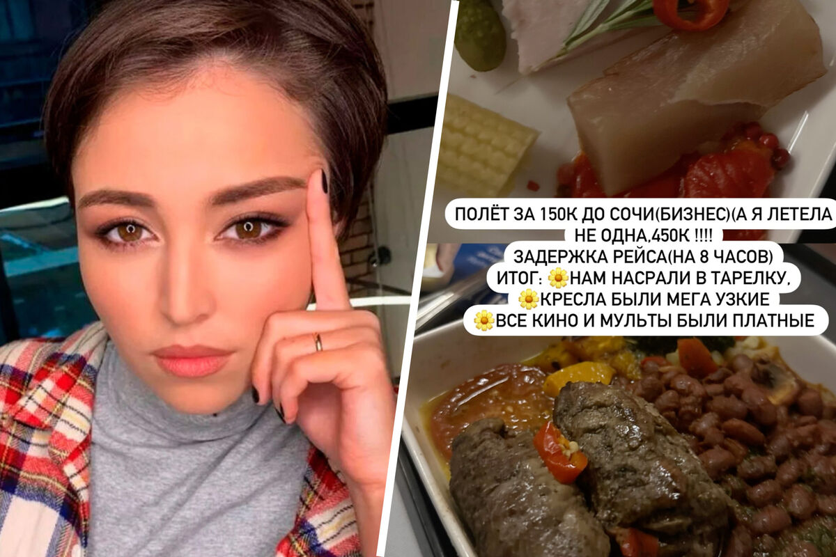 Сабурова пожаловалась на задержку рейса на 8 часов, узкие кресла в бизнес-классе и платные фильмы и мультики. Она также возмутилась качеством еды в самолете. По словам блогерши, блюда выглядели так, будто им справили нужду в тарелку. Супруга комика опубликовала фото этой еды, приложив к нему песню из заставки «Ералаш».