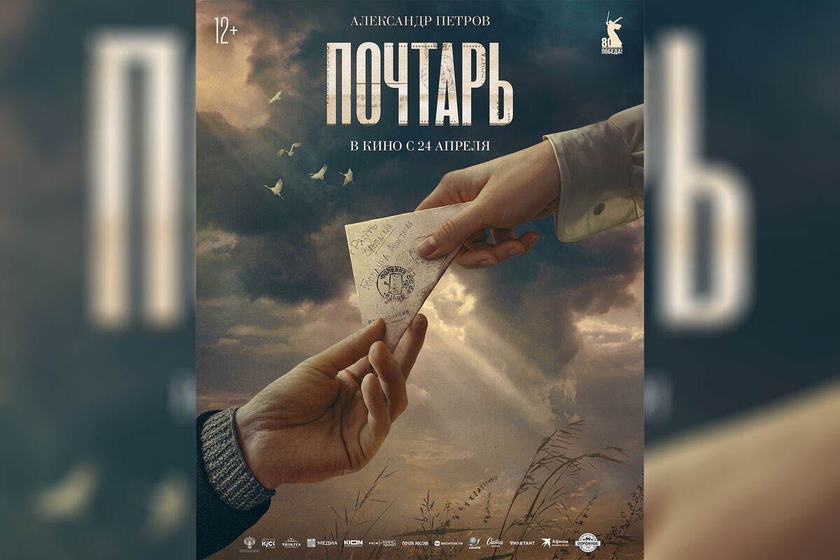 На постере фильма, снятого KION и компанией «ТРИКИТА ЭНТЕРТЭЙНМЕНТ» герой Петрова — чудаковатый почтальон — передает письмо с фронта.