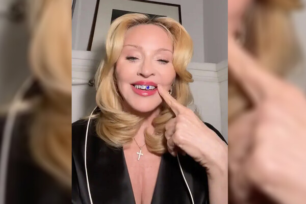 Американская певица Мадонна поставила на зубы гриллзы с бриллиантами и лазуритом. Видеороликом с обновкой она поделилась на своей странице в TikTok.