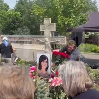 Telegram-канал опубликовал вырезку из видео, на которой видно, как вдовец Петр Чернышев выходит из машины с двумя большими букетами роз и кладет цветы на могилу артистки. Также на кладбище заметили мать артистки Валентину, дочь Анну и других родственников, а поклонники артистки приезжают туда уже с самого утра.