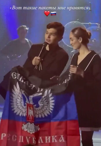 Akmal' принял подарок в цветах российского флага на концерте в Донецке