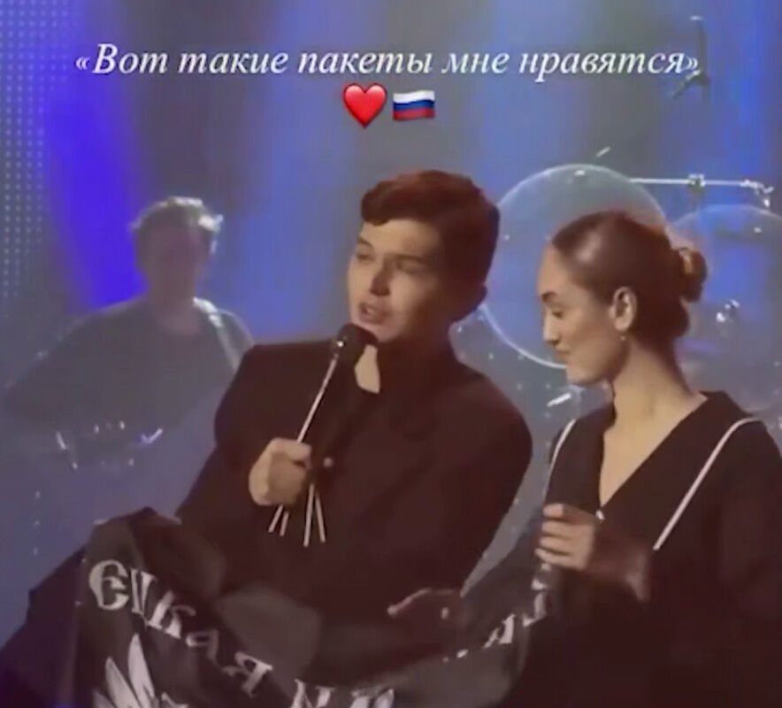 Akmal' принял от поклонницы подарок в пакете в цветах российского флага.