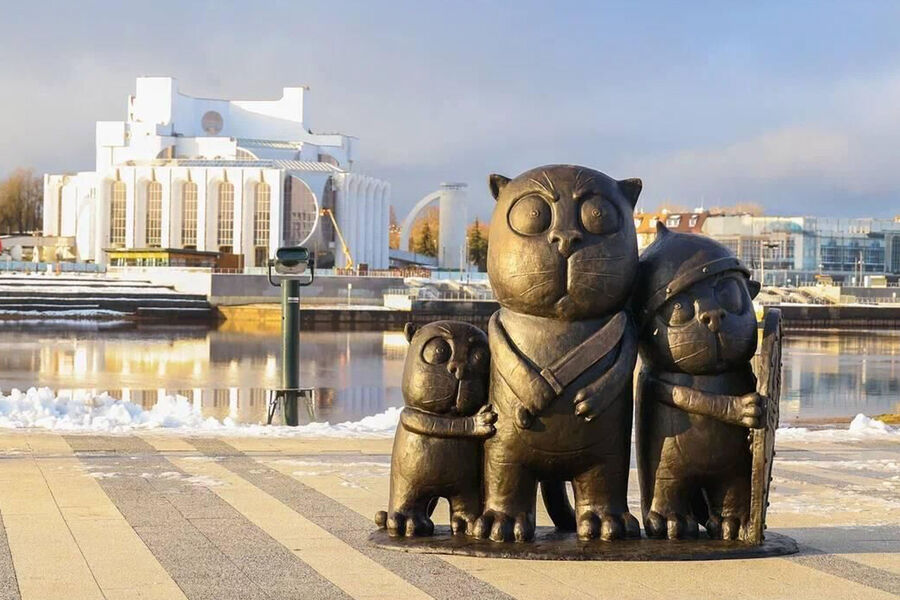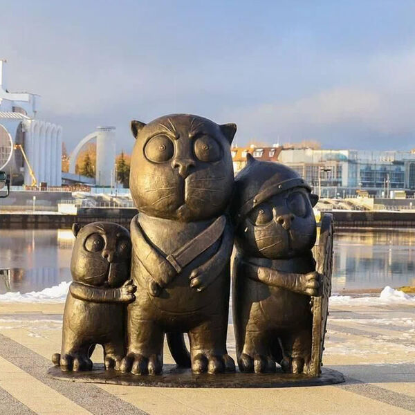 В Великом Новгороде установили скульптуру трех котов по мотивам картин Ложкина